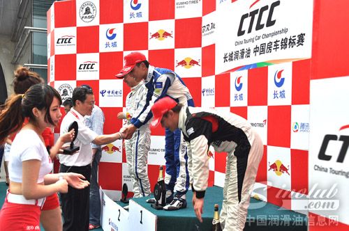 中国石化润滑油公司副总经理赵江代表长城润滑油为获奖车手颁奖