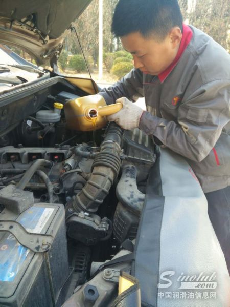 图:对上门保养的车辆进行保养服务,使用的全部是中华润滑油。
