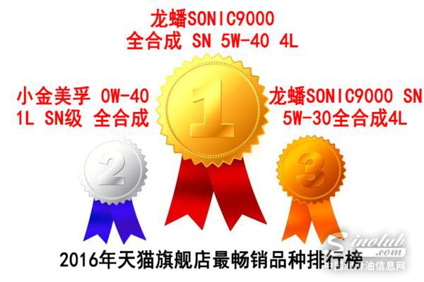 在机油猫公布的天猫旗舰店畅销产品数据中,“龙蟠SONIC9000 全合成机油汽车发动机润滑油 SN 5W-40”本年度成交量高达87600件,成功夺得“最畅销产品”称号,登上冠军宝座。排名第二的是“Mobil 美孚一号 小金美孚 润滑油 0W-40 1L API SN级”。“龙蟠SONIC9000 SN 5W-30全合成机油 4L”在本年度排行第三。作为马云“新零售”理念的好学生,龙蟠力克群雄,勇摘金牌,其所掀起的“双十一风暴”和线上销售与线下连锁服务体系双驱动的成功经验值得其他民营品牌的参考和借鉴。