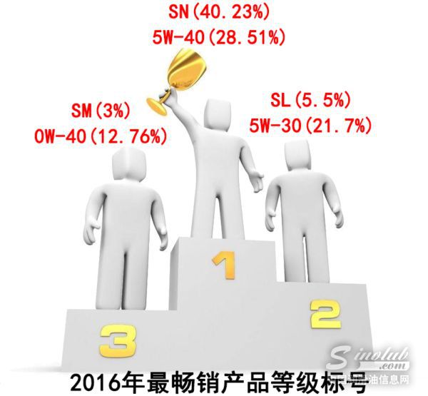 2016年,机油畅销等级排行榜整体趋势保持稳定。高等级、高品质的机油在电商销售市场中,依旧占据绝对优势。润滑油最高等级SN名列前茅,占据市场40.23%的销售量。此外,在机油标号方面,“5W-40”份额为28.51%,荣获2016年标号冠军。标号“5W-30”的机油也广受车主们的青睐,本年度位列第二,获得了21.7%的市场份额。“0W-40”位列第三,占比为12.76%。机油猫提醒车主,从实际用车需求来看,建议车主选择适合车型和行驶区域对应级别的机油,用以满足从低温到高温的广泛区域,适应温度的变化给予发动机更为全面的保护。