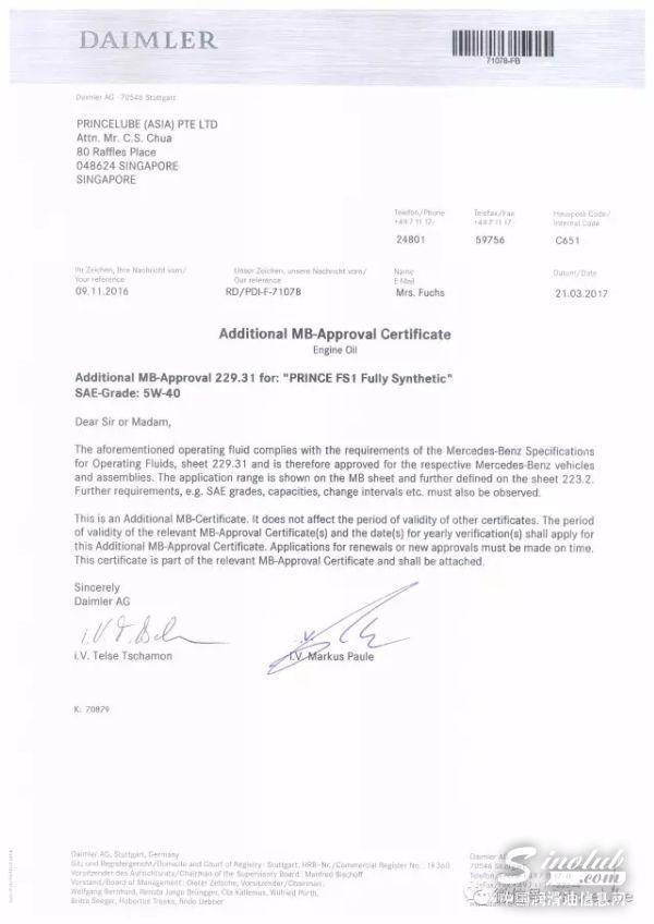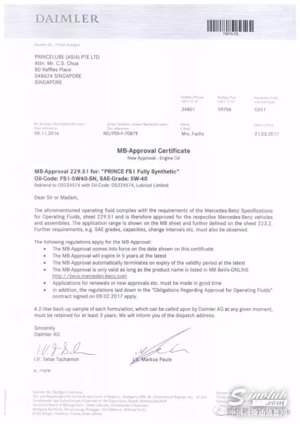 关于MB229.3、229.31、229.5、229.51认证等问题