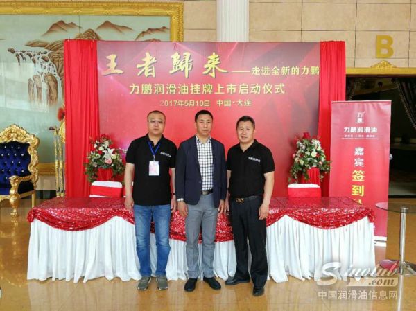 大连力鹏润滑油董事长刘涛与廿年客户王大鹏、张明哲会前合影