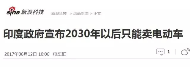2017年6月,印度:2030年禁售燃油车,只能卖电动车。