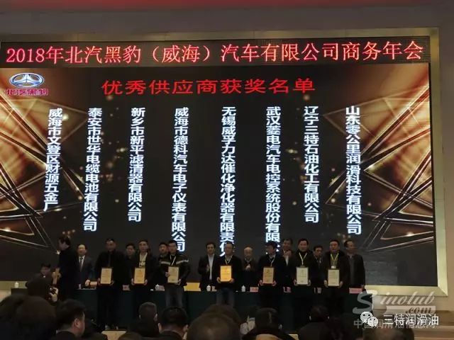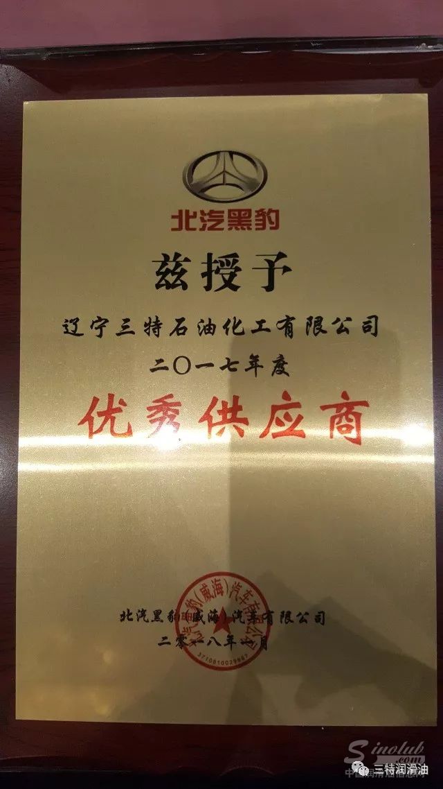 “辽宁三特石油化工有限公司被北汽黑豹(威海)汽车有限公司评为2017年度优秀供应商!”