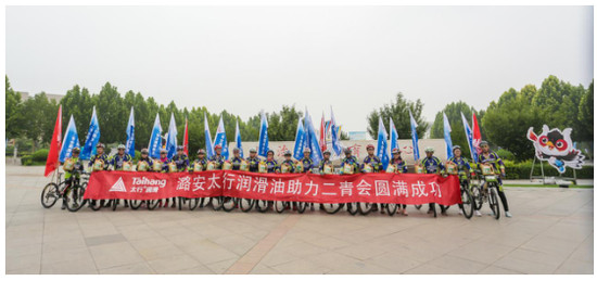 经过一个小时的骑行,骑手们来到了此次活动的终点长治市体育中心,在二青会的标识前面,市场总监王国新代表太行润滑油公司向参加此次活动的队员颁发了活动奖品,队员们纷纷合影留念,以“青春的约会、拼搏的舞台”为名,弘扬竞技拼搏之精神,为太行润滑喝彩!