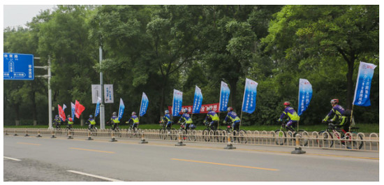 上午九点半,骑手们在绕国家湿地公园一周后,于湿地公园门口集结,他们统一拉起了此次活动的主题横幅“潞安太行润滑油助力二青会圆满成功”,并以此为起点,向终点长治市二青会主赛场——长治市体育中心出发。一路上队员们两人成行、三人成列,保持着骑行队伍的整齐有序,蓝白相间的旗帜迎风飞扬,摄影及后勤车队一路随行,保障着整个活动安全有序地进行。因为有这么一群倡导绿色出行的“老青年”和在能源革命上奋勇拼搏的“太行人”在迎宾大道上成为了一抹靓丽的风景。