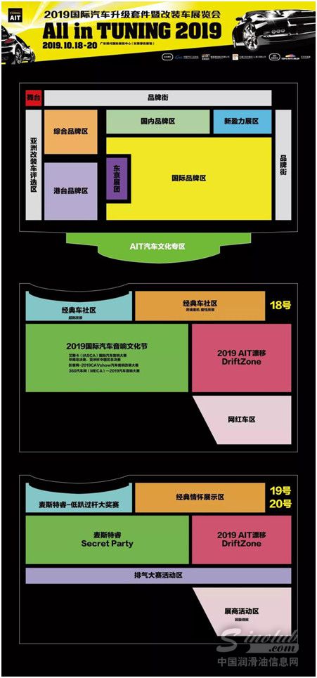 展品内容进一步丰富,2019AIT首创品牌街、内外饰定制区、港台品牌区、国际品牌区、综合改装品牌区以及TAS日本品牌区,增容高端洗美养、膜、电尾等新产品的新盈利展区,打造国内首家一站式采购的大改装展,超百款新品展出。