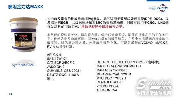 中国商用车领域正在从国五向国六的跨越阶段,目前市场主要的产品还是CI-4/CH-4的矿物油,但是很多主机已经开始装配大量的国六发动机,这些新型发动机油即将成为中国柴油车主流,市场需要符合国六以及长里程的合成柴机油,而且是大量的。