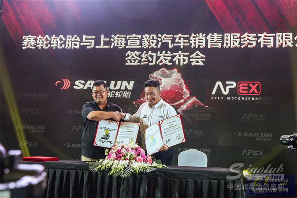 最后,赛轮轮胎与上海APEX总经理金毅先生签定赛轮品牌运动轮胎全球销售权的合作协议。此次签约标志着赛轮轮胎运动产品历经3年的赛事严苛检验,由专业赛道正式走向民用市场,赛轮轮胎全新运动胎GENE-R系列产品将为广大汽车运动发烧友提供更加丰富的选择。
