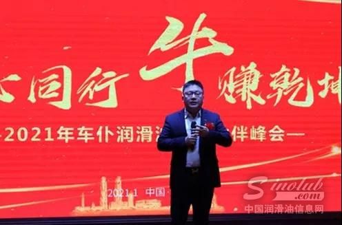 武总代表车仆润滑油致辞,武总对各位合作伙伴的到来表示热烈的欢迎和衷心的感谢。2020年车仆润滑油经历了疫情,整个公司面临巨大的考验,在大家的齐心协力下经受住了考验,赢得了掌声和胜利!面对2021年,车仆润滑油将携手合作伙伴,顺势而为,乘势而上,蓄势而发,不断取得新的突破。