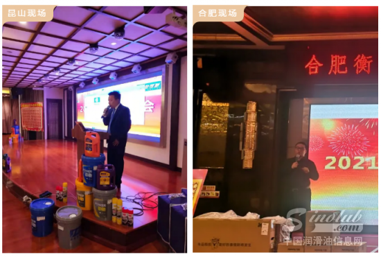 近日,金雪驰润滑油(车用油)营销总公司在昆山和合肥两地举办2021年金雪驰春季答谢会。金雪驰润滑油(车用油)营销总公司副总经理何青龙、华东大区销售总监李玉、华中大区总监吕伟带领销售团队与当地百余位经销商朋友们齐聚一堂,现场氛围其乐融融。