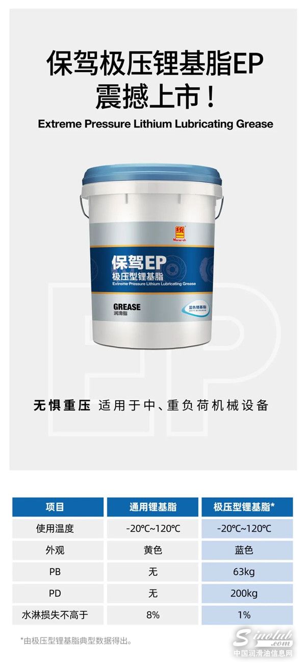 统一保驾极压锂基脂EP震撼上市!该产品重载抗磨性能大幅提高,极限耐压高达200kg,即使成膜度比发丝还要薄,极压抗磨性依然出色。适用于固定设备、非道路设备、车辆的滚动轴承和滑动轴承及其他摩擦部位的润滑,特别是有震动和冲击负荷的工况。