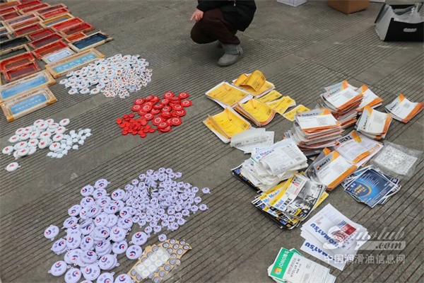 11月,专案组在成都市、攀枝花仁和区开展收网行动,抓获犯罪嫌疑人5名,捣毁窝点2处,查获假冒“昆仑润滑油”26桶,“昆仑润滑油”商标标签2572张、防伪码标签200余份、各类配套大小油桶盖600余套、丝印板(模具)100余套。