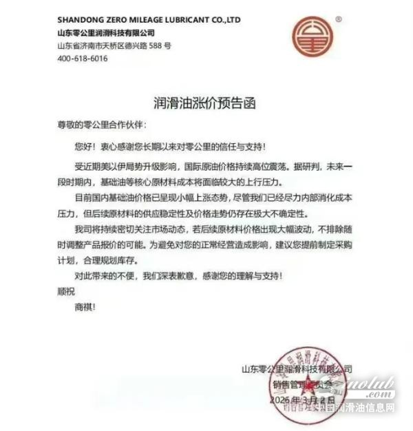 中国润滑油信息网行业分析认为,目前已有多家润滑油企业发布调价通知或涨价预告,叠加基础油价格走强,市场正在形成涨价预期。未来一段时间,润滑油行业可能进入新的价格调整阶段。