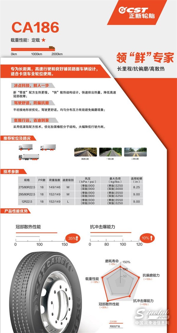 在商用车领域,正新CA186凭借突出的节能省油优势获得车队及卡友的广泛认可,成功斩获“年度节能省油卡客车轮胎”奖项。
