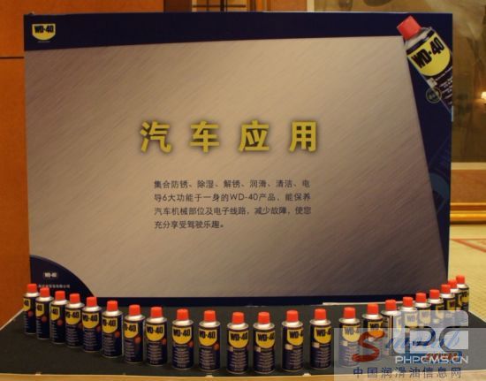 当中国润滑油信息网记者问及WD-40公司过去一年在中国的拓展情况时,Stephanie女士表示,在中国经济迅速发展的大背景下,2011年,WD-40公司在中国同比增长43%,保持着稳步、快速的增长速度。WD-40产品集防锈、除湿、解锈、润滑、清洁、电导6大功能合一,适用于不同领域,而在中国主要应用于工业市场和五金市场,在汽车市场的销量相对较低。然而,WD-40产品能有效保养汽车门锁、门铰、天窗、电器电路等,在欧美国家,是汽车必备的一个养护用品,为何在中国汽车市场略显失色呢?