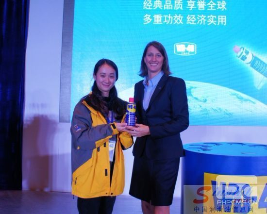 WD-40公司亚太区董事总经理Geoff先生、WD-40公司中国区总经理Stephanie女士、WD-40中国公司市场总监周行健先生、WD-40中国公司销售总监黄耀民先生,以及来自全国各地的一百多名经销商代表出席了本次大会。美国上海领事馆商务官员,以及中国包装联合会、中国粉末冶金行业协会、中国链传动行业协会等众多协会领导的莅临与支持使得此次发布会尤为隆重盛大。当全新WD-40除湿防锈润滑剂产品揭幕时,在座的每一位嘉宾都为之欢呼鼓掌,整个会场沸腾起来。作为润滑油行业独家受邀媒体,中国润滑油信息网(www.sinolub.com)记者与众多领导、嘉宾共同见证了这一时刻,并全程报道大会盛况。
