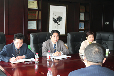 彩虹精化王若文副总经理(中)、陈英淑副总经理(右)、李征胜总监(左)在彩虹·纳尔特渠道管理部、大客户管理部、财务管理部调研