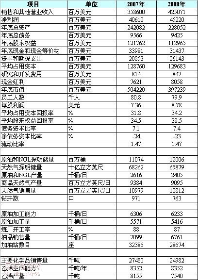 埃克森美孚公司主要经营指标