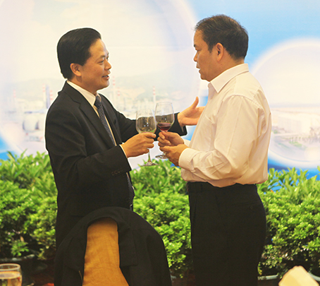 陈永弟董事长(左)和惠州市委书记、市人大常委会主任黄业斌(右)在午宴现场举杯致贺
