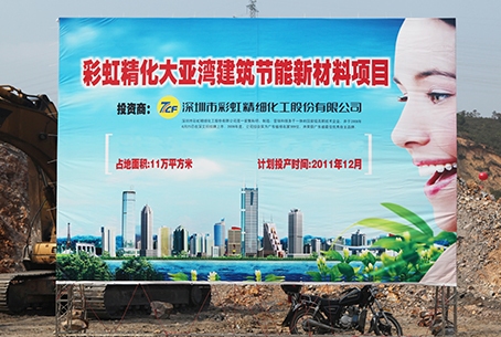 彩虹精化的建筑节能新材料项目位于精细化工产业园A1区,背靠高山,远观大海,项目用地11万平米,项目建成后将成为年产2亿罐气雾剂、100万平方米外墙外保温节能涂料和5万吨环保涂料的大型生产基地。目前,项目土地的平整工作已经接近尾声,即将开始厂房和办公建筑的奠基和建设,该项目是彩虹精化打造建筑节能一体化最佳系统解决方案供应商的关键性举措之一,是彩虹精化同心多元化发展战略的坚实基础。