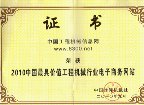 经过评审团长达3个月的综合测评,中国工程机械信息网(www.6300.net)在众多行业电子商务平台中脱颖而出,获得“2010中国最具价值工程机械行业电子商务网站”的殊荣。