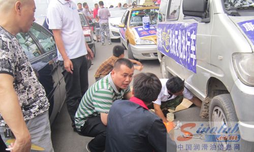 康普顿车用油华东大区经理刘锐现场指挥试验车换油