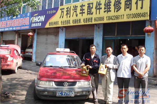 孙福光师傅与引航润滑油鞍山办事处王立新经理、辽宁省销售经理宦立双合影