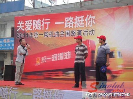对卡车司机的深刻理解和持续关爱,统一柴机油不仅创新研发出他们需要的润滑油产品,而且几乎年年举办路演活动,将全新升级的产品及关爱送到卡车司机身边。日前,统一柴机油实行东、西“双线并举”,在上海、重庆、郑州、广州等10个城市的物流园相继启动了“关爱随行 一路挺你”主题巡演活动,将国际品质的CH-4产品送到全国卡车司机的身边,为卡车司机送去更多关爱。通过现场互动、专家咨询、关爱体检、抽奖、促销、演出等丰富的活动内容,与重卡司机面对面交流,让卡车司机更多地了解车辆的保养、润滑油使用等知识,让车辆得到更专业的保护。