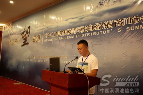 宝捷公司营销总监王明先生做了“新宝捷,新活力”主题发言,王总首先为全国经销商分析了当前的经济形势和国内润滑油行业现状,对营销的全局工作做了总结:过去的2011年,通过渠道精耕细作,创新的产品和营销策略,宝捷创下了多项销售记录,胜利达成全年销售目标。今年,在经济环境复杂的情势之下,我们强有力的市场措施、多管齐下的品牌传播手段推动了销量持续增长,上半年新增加代理商超过20家,一批具有良好发展理念的优秀商家加盟宝捷。在公司的引导之下,部分代理商取得了惊人的销售业绩。同时王总对2012至2013年度,宝捷在品牌建设、产品和服务创新、市场推广等方面所做的工作做了全面阐述。