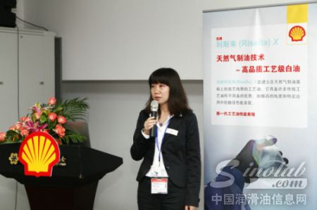 壳牌中国工业润滑油市场部总监朱京捷女士在媒体沟通会上发言