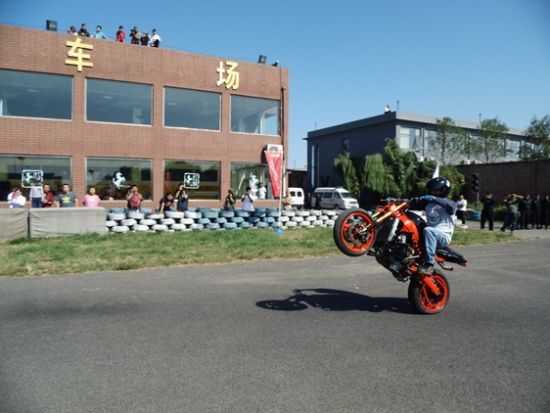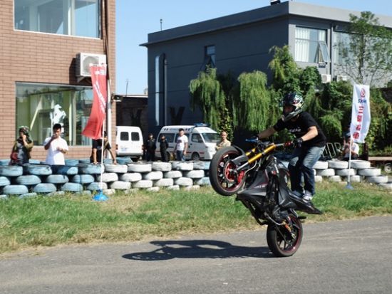 午前,大部分车友都已经到达现场,在活动正式开始前,美女模特走秀和精彩的平地花式特技表演为活动打开了激情的大门,车友们纷纷拿出手机和相机排照留念,很多对特技感兴趣的车友还同现场表演的车手们相互交流、切磋技巧。