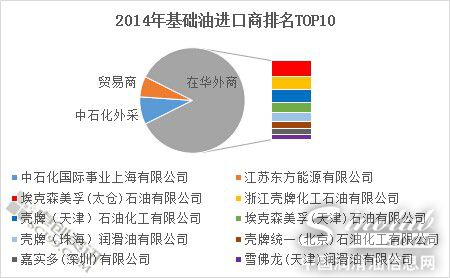 2014年,基础油进口商依然没有摆脱外企当道的局面,在前10名中占据八席之地。据卓创资讯数据统计,截至11月份,前10名进口商进口总量为110.08万吨,而8家外商在华工厂进口占85.17%,进口总量为93.76万吨。显而易见,外商对于中国润滑油市场这块大蛋糕可是垂涎已久了。