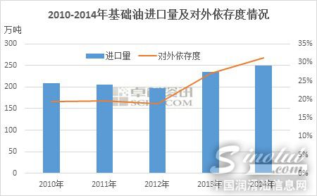 随着基础油进口量的不断增长,我国基础油对外依存度出现飙升。据卓创资讯测算,2014年1-11月份,我国基础油对外依存度升至31.21%。在国内基础油产能快速增长的情况下,进口基础油占据30%以上的份额无疑令国内炼厂压力倍增,国内外基础油产品激烈竞争将成为未来基础油市场的主要表现之一。