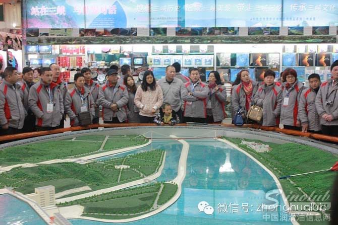 图4:中华经销商们参观三峡大坝的模型,聆听讲解员对大坝的功能及三峡工程概况的介绍