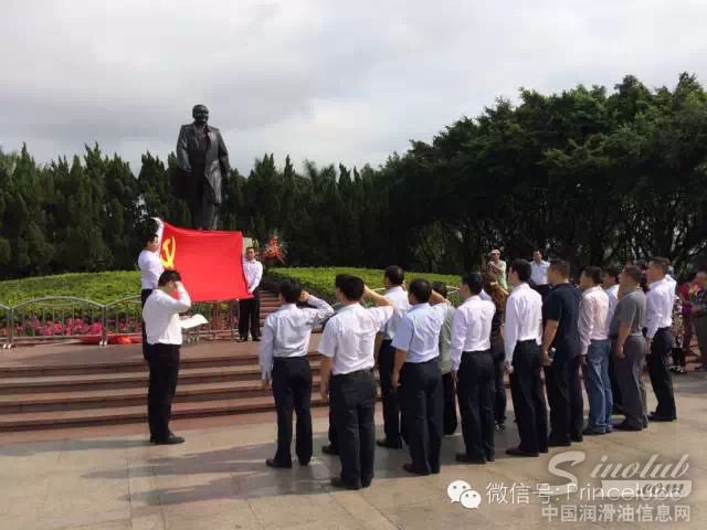 随后,全体人员一起向邓小平铜像三鞠躬,全体党员在党旗与邓小平铜像前重温入党誓词。