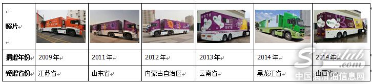 叶氏化工2009年至2014年共捐赠了六部手术车,详情如下: