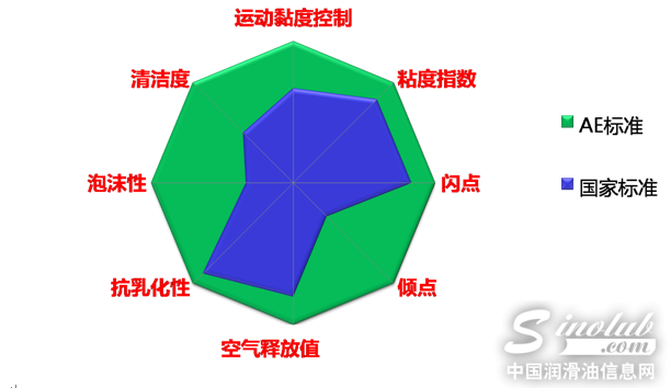 相比国外竞品的性能,AE液压油的质量水平完全可以与之抗衡或更略胜一筹,特别是在抗乳化性、过滤性和抗氧化方面,AE液压油具有更为明显的优势。同普通抗磨液压油相比,AE液压油具备更高的粘度指数和更好的氧化安定性能,借此能使液压系统的寿命延长,运行更加平稳顺畅。