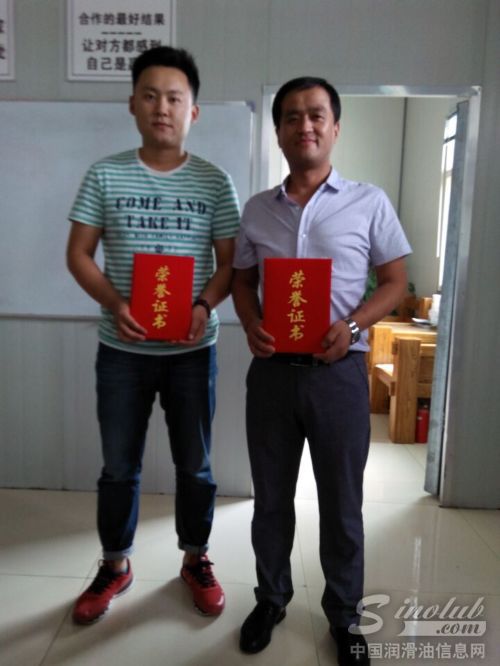 接着公司对上半年表现比较优秀的给予颁发奖励和荣誉证书,吴学峰、李佳明获得销售突出贡献奖,张文清、孙金成等获得销售开拓奖,潘广林、王洪强、张杰等获得新开发奖。