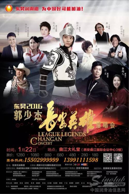 1月2日,东昊润滑油公司在西安金翅鸟演艺中心举办了品牌形象代言人签约仪式暨媒体发布会,正式与国内知名艺人郭少杰、杜歌、孟刚三兄弟签署了企业形象代言合同,并为本月22日,由东昊赞助的“长安英雄”明星演唱会做了发布说明。