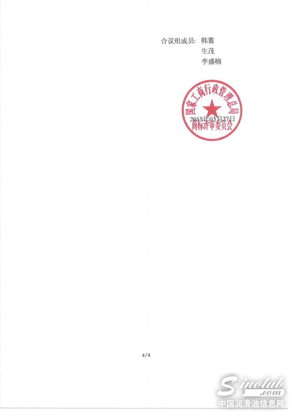 2015年3月27日,国家工商行政管理总局商标委员会裁定书: