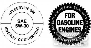 规格油显示 API 的一个或两个质量商标:ᡌ甜甜圈ᡍ服务标记显示 API 表现参数,如适用还包含了节能指标;ᡌ星暴ᡍ认证记号表示该油满足了国际润滑剂标准化及批准委员会开发的最新标准,这是美国和日本生产商的代表组织。