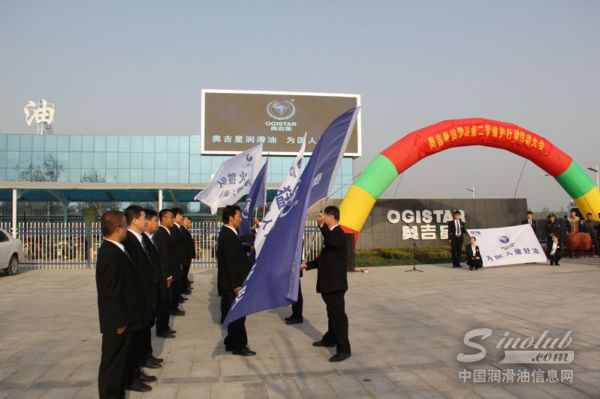 上午7点30分,在强劲的进行曲中,主题为“为国人做好油”的奥吉星润滑油第二季维护行动启动仪式隆重开始。奥吉星润滑油品牌总监孙悍鹏代表维护团队向集团领导和全体生产、服务人员宣誓,车间生产、研发质检和后勤服务人员代表做了郑重承诺,四位公司领导向销售将士授旗。