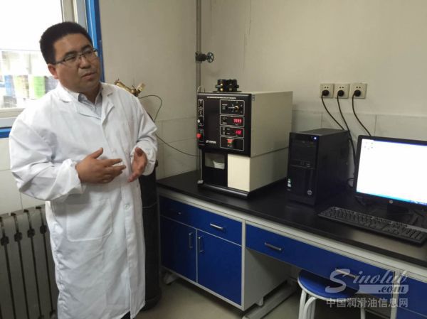 龙润润滑油质检部主任雷浩先生为来访嘉宾讲解质控流程