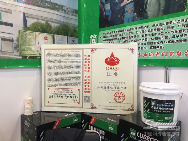 中法A9高级润滑油有限公司盛装参展,引起全场观众的广泛关注。下面就让中国润滑油信息网的小编带您去领略下中法A9高级润滑油的展台风采吧: