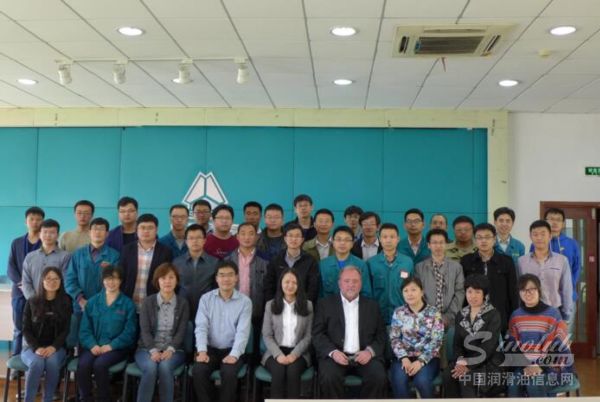 埃克森美孚工程师与参与培训的中国重汽技术人员合影共同庆祝培训活动圆满结束