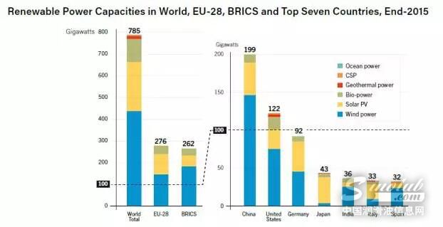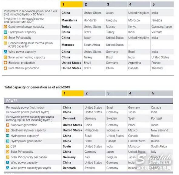 中国依然是世界上最重要的可再生能源装机国家。在中国之后分别是美国、德国、日本。