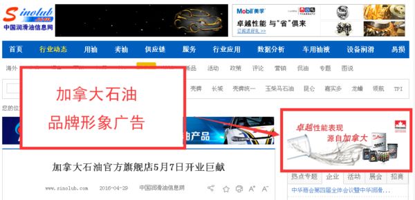 加拿大石油品牌形象广告在中国润滑油信息网上线