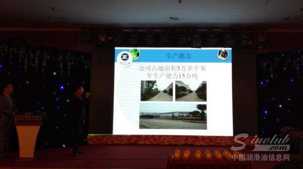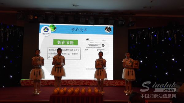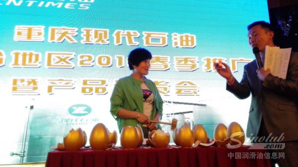 在余总的发言过程中,礼仪小姐现场展示了现代石油新品。