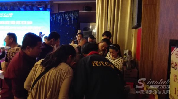 现代石油营销总监张总也作了热情洋溢的发言,为感谢与会客户对现代石油的支持,张总现场给出了优惠的促销政策,也赢得了客户们掌声欢迎。刚进入打款订货环节,收款台即被客户围得水泄不通。